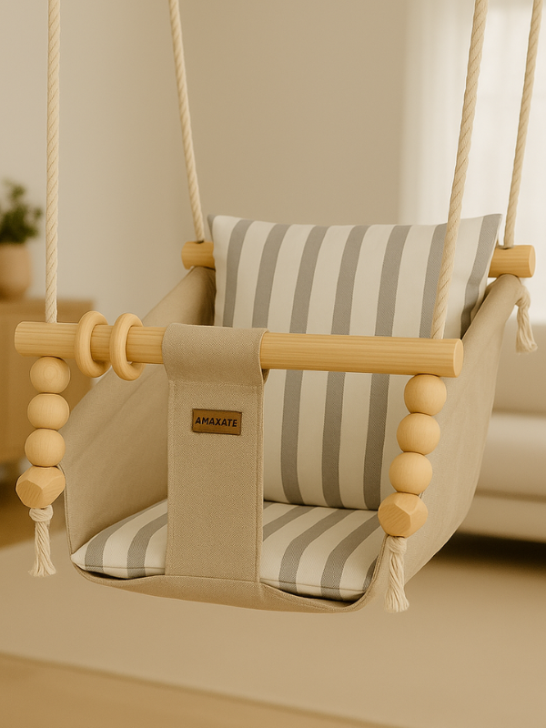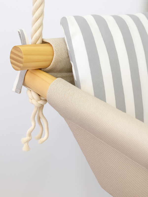 - La posición de la Mecedora se puede variar corriéndole los nudos, acompañando el crecimiento del niño.