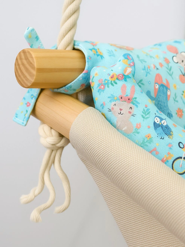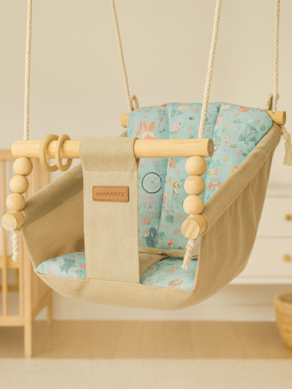 - La posición de la Mecedora se puede variar corriéndole los nudos, acompañando el crecimiento del niño.