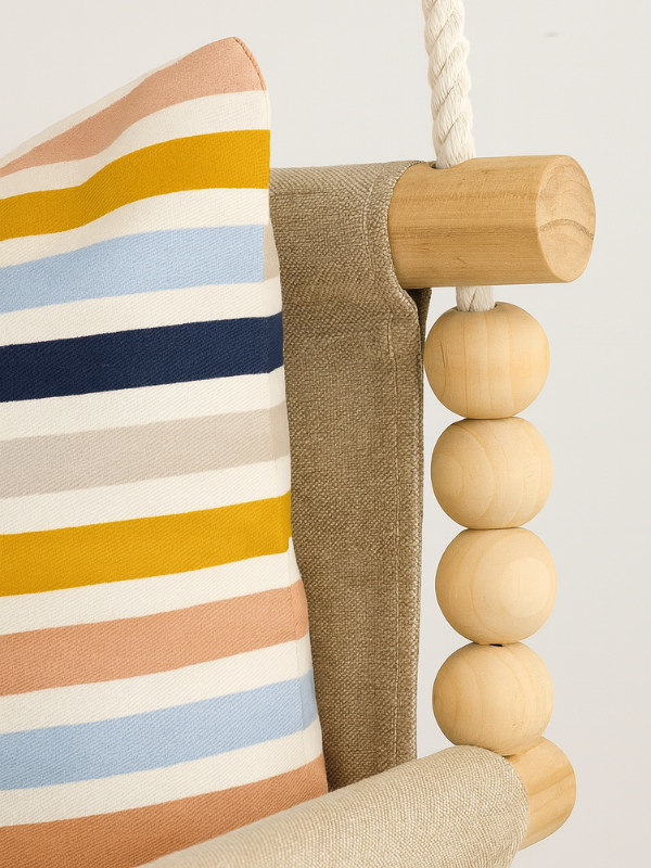 El asiento de la tela se puede quitar desatando los nudos debajo de cada espiga.