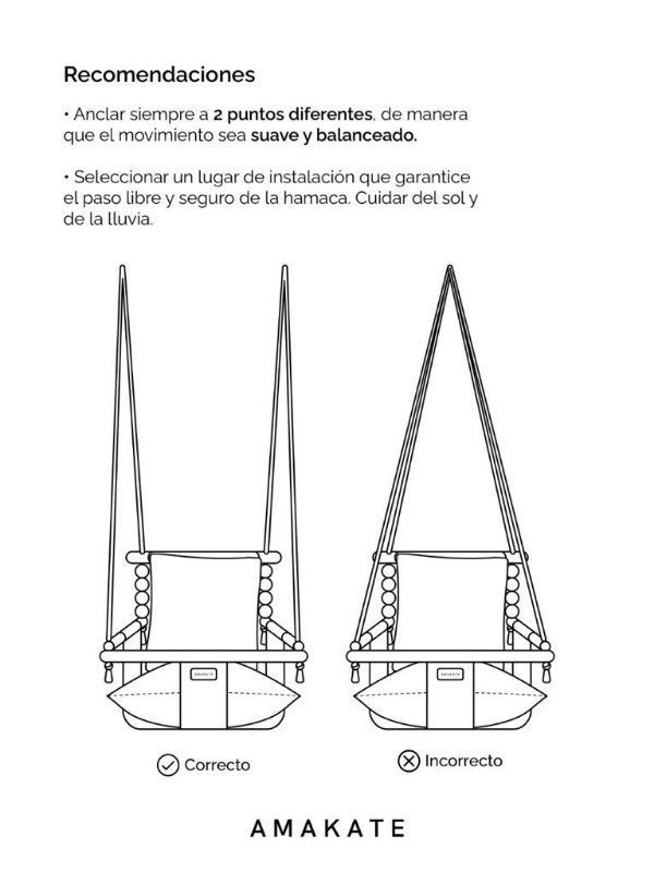 Contiene un kit de instalación muy seguro, con Pitones cerrados con sus tarugos para paredes o losa, y mosquetón para que sea desmontable y fácil de trasladar. Las 4 sogas se unen en 2 puntos diferentes, de manera tal que su movimiento sea más suave.